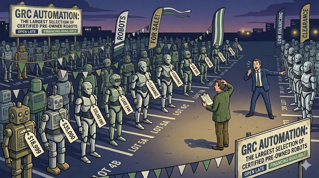 Open any GRC vendor's website right now. Count the seconds before you see "AI-powered" or "intelligent automation" or "machine learning-driven insights."